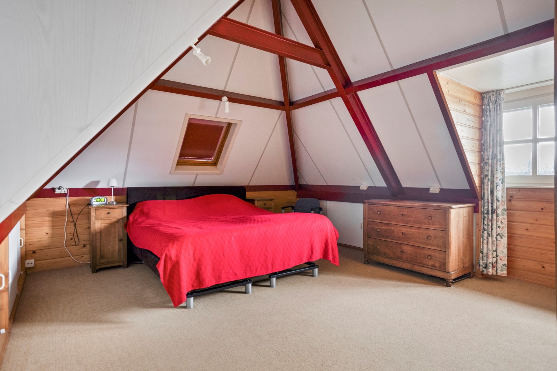 • dak beschoten met houten en geïsoleerde dakplaten en gedekt met betonpannen.