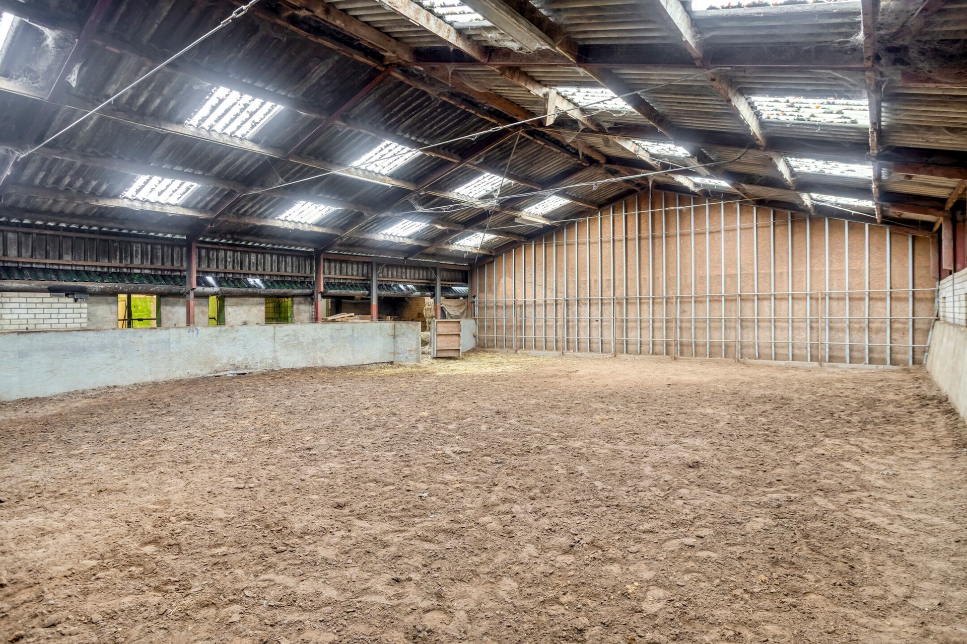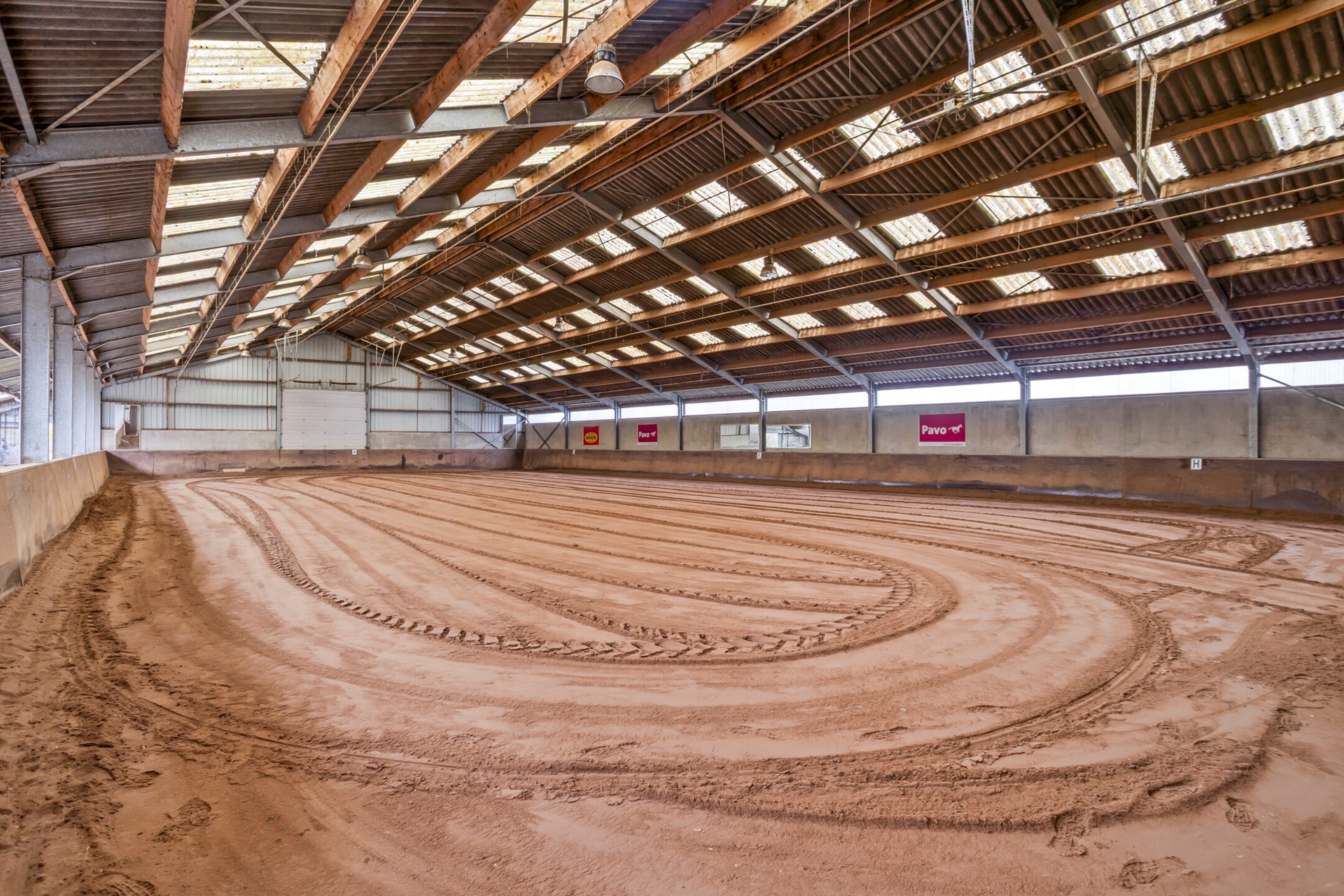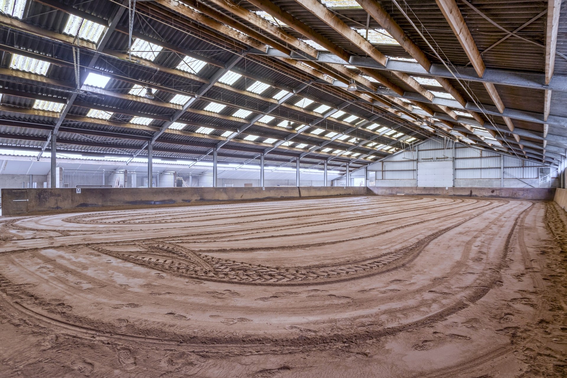 • de vloer is een gestorte vloeistofdichte betonvloer en een zandbodem voor de rijbak.