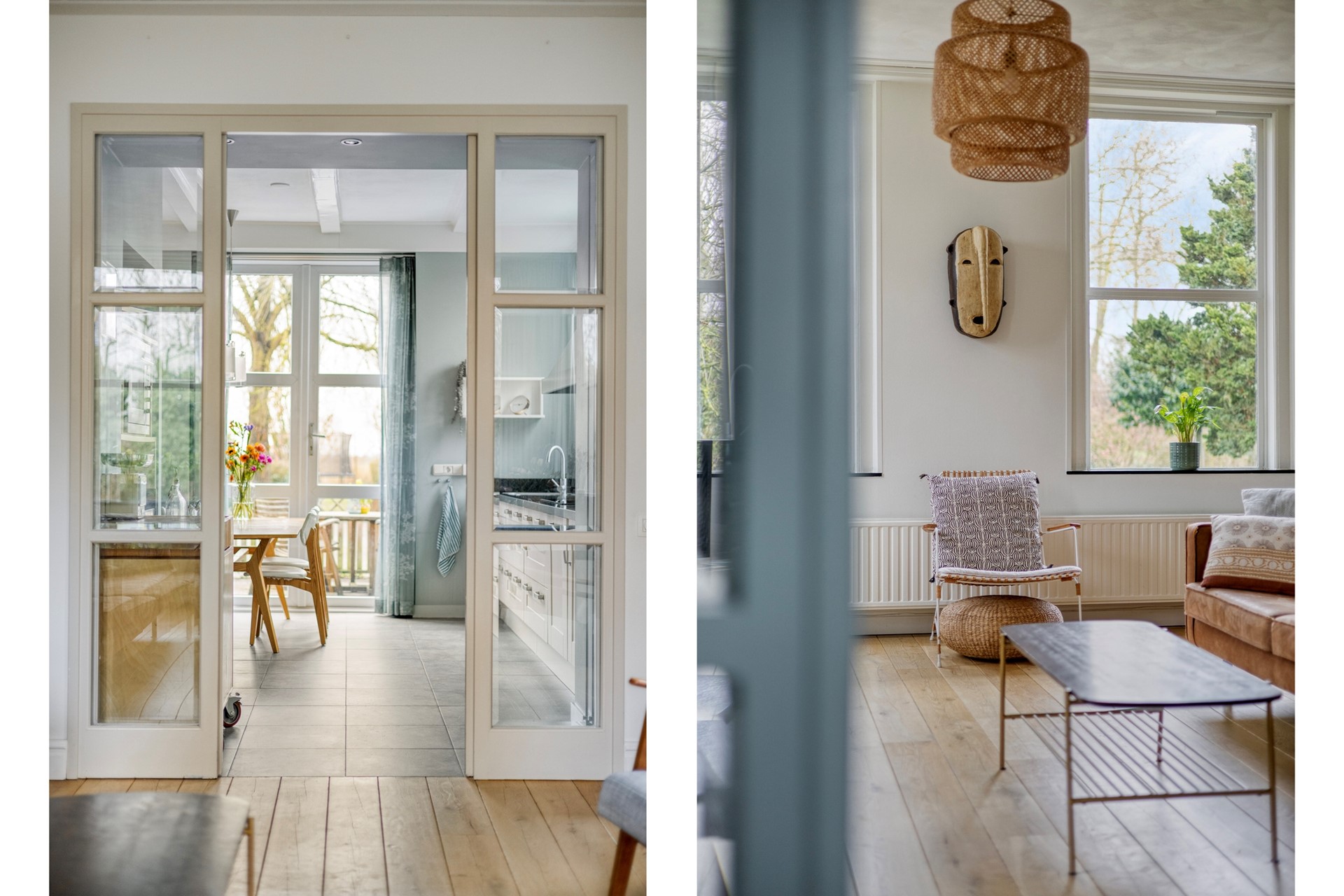 houten kozijnen en stalen kozijnen is dun dubbelglas aangebracht.