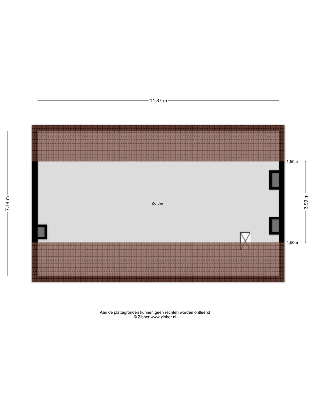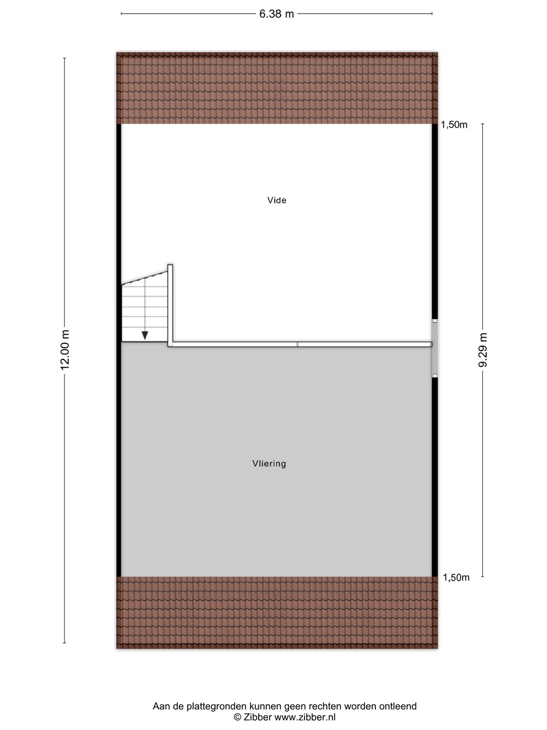 - opp. ca. 45 m², goothoogte 2 m, nokhoogte 4 m.