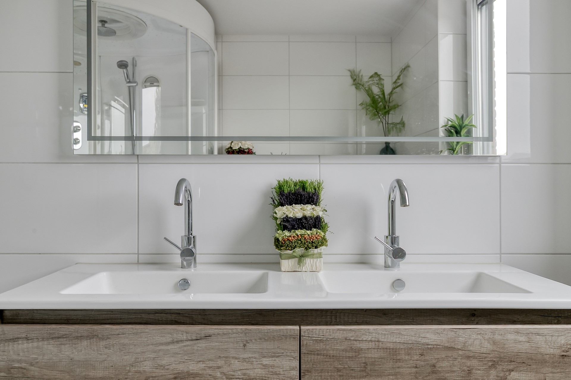 Doucheruimte met inloopdouche en wastafel.